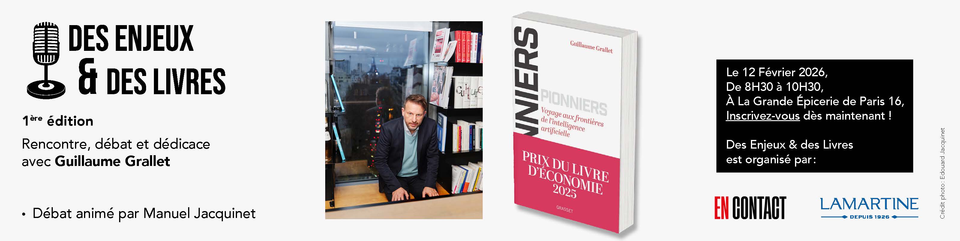 La première édition se tiendra le 12 février et permettra d’entendre et de questionner Guillaume Grallet, auteur de Pionniers, dont le livre vient de recevoir le Prix du Livre de l’économie. Le rédacteur en chef technologies du Point est allé rencontrer les hommes qui font l’IA, la rêvent et vont peut-être changer votre vie ! Certains d'entre eux tels, Marc Zuckerberg ou Sheryl Sandberg (Meta) ont par contre été décrits dans un autre livre, celui de Sarah Wynn-Williams comme Des gens peu recommandables. Lors des petits-déjeuners Des Enjeux & des Livres on débattra donc avec ceux qui font l'économie !