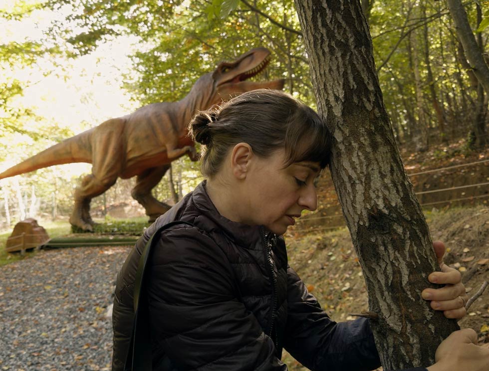 RJ : Il s’agit en fait d’une coïncidence ! Nous tournions à côté d’un complexe hôtelier qui s’appelle Wonderland, et qui nous a généreusement hébergés. Derrière l’hôtel, il y avait un parc de dinosaures, et je me suis dit que ce serait parfait pour le film. Dans le scénario, nous avions prévu une scène dans les bois, mais je l’ai remplacée par les dinosaures. D’un point de vue symbolique, ça peut signifier un monde dans lequel les êtres 10 11 humains n’existent plus, une espèce d’avenir post-humain. Mais ce sont aussi de faux dinosaures qui servent d’attraction touristique, et qui, dans ce sens, illustrent la commercialisation à outrance, même de la préhistoire. C’est une image à interpréter, sur laquelle on pourrait écrire tout un essai.