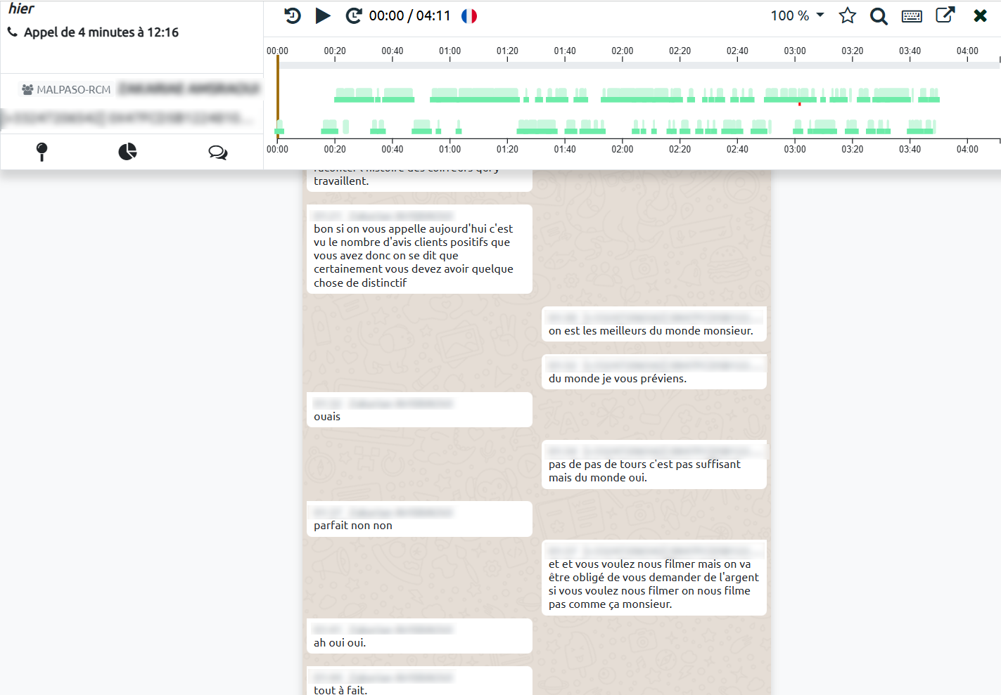 Pour bien comprendre en quoi le speech-analytics transforme le métier des agents et les directions de l'expérience client et de la qualité, le visuel de une est éloquent : un superviseur ou un directeur de la conformité des ventes peut être alerté sur l'emploi de mots ou d'arguments inadaptés, et retrouver directement le moment de la conversation où cette anomalie est intervenue. Il peut analyser l'impact des blancs dans la conversation, identifier les corrélations pertinentes entre les étapes clés de la conversation et leur impact. Mais il peut également alerter un télé-conseiller sur un oubli important de recueil d'informations : si vous planifiez une intervention d'un technicien à domicile, pour l'installation de la fibre, il faut demander les digicodes, les faire répéter pour bien valider et recueillir le numéro de téléphone mobile qui servira à envoyer le sms.